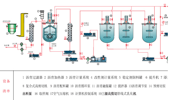 4、基质沥青快速升温及循环二次升温系统,确保满足生产所需的恒定温度;