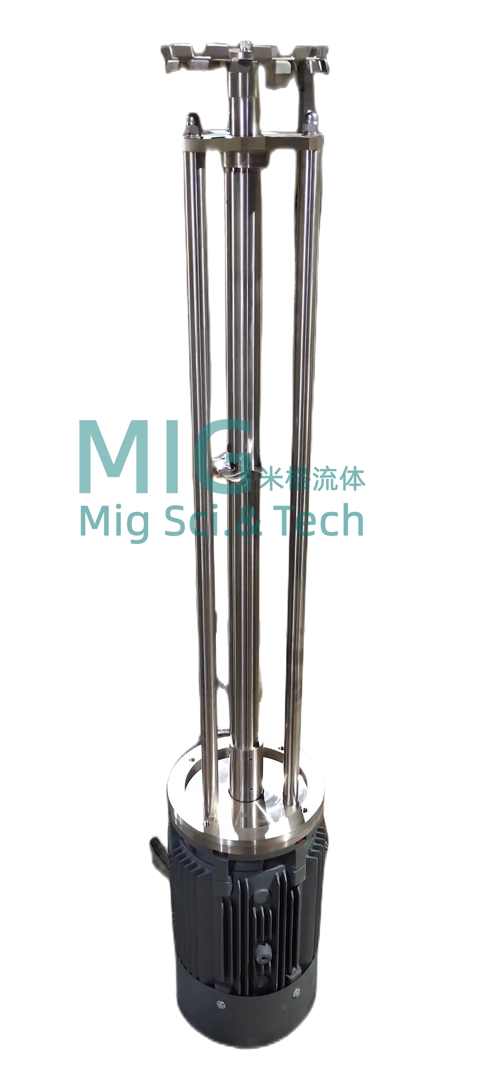 重型机架与轻型机架相比设备稳定性能更好,采用液压升降,机座及机架平稳耐震。适合于在多个敞口式容器内的简易操作,可在各不同容器上独立完成混和、搅拌及分散等工艺过程,在每批物料处理的间歇,可以做彻底的清洗工作。每批处理能力从600升到5000升,功率从7.5KW到90KW不等。