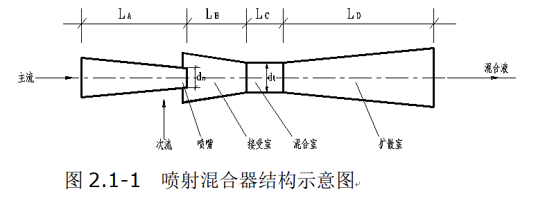 喷射混合器主要由喷嘴、接受室、混合室和扩散室等组成,如图2.1-1所示。